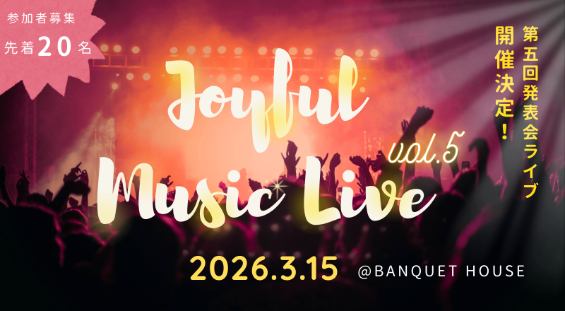 そしてそしてお待たせいたしました!次はいよいよ5回目の発表会『Joyful Music LIVE!! vol.5』が開催されます!以前にも増して更にパワーアップした発表会となること間違いなし!是非ともチェックしてみてください!!