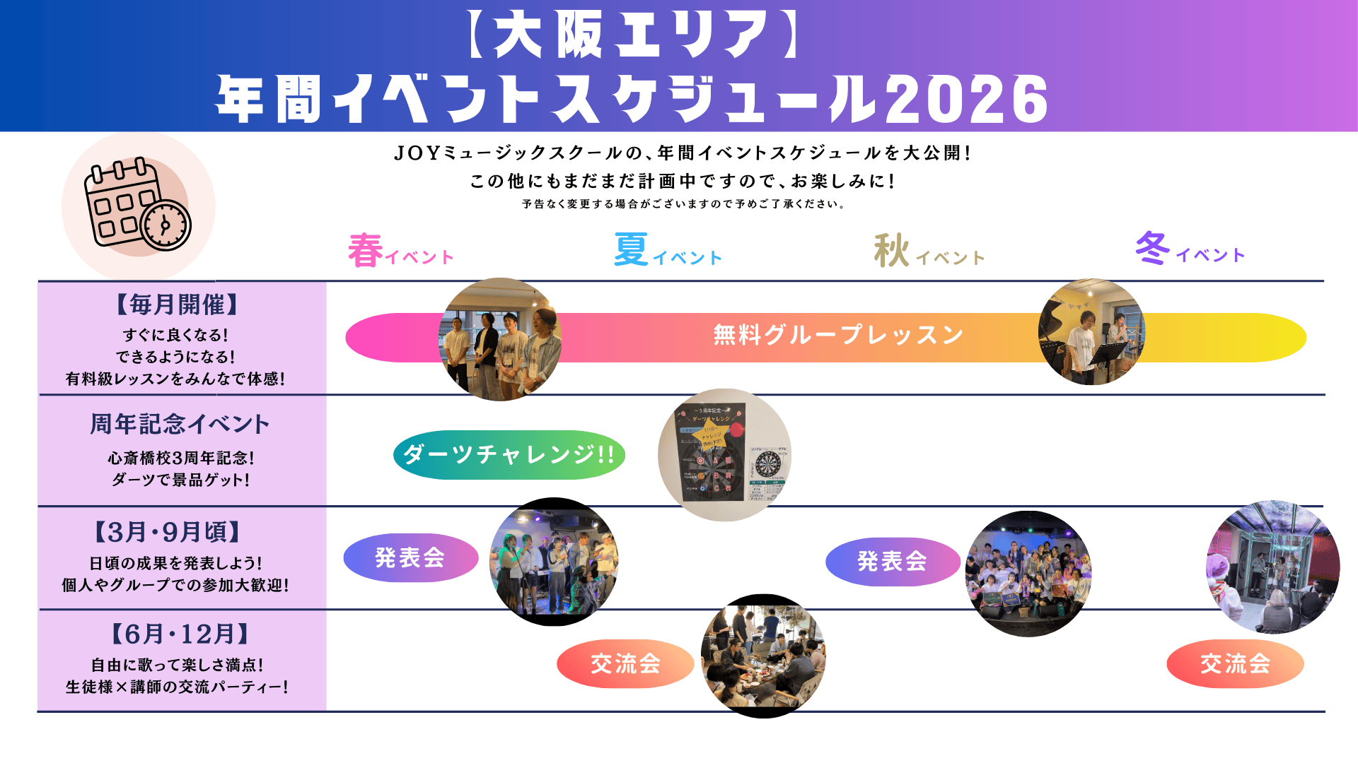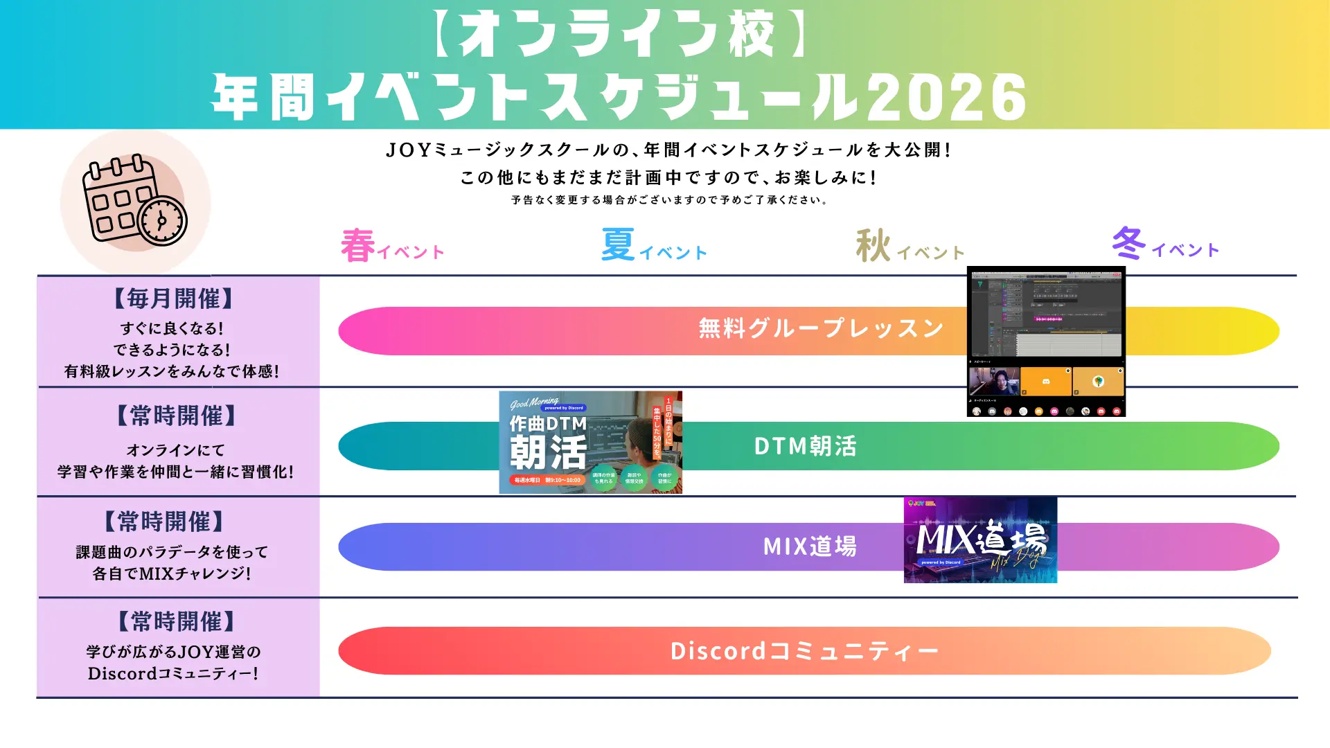 2026年の年間イベントスケジュールを公開いたしますので、1年を通しての目標づくりに、ぜひお役立てください!